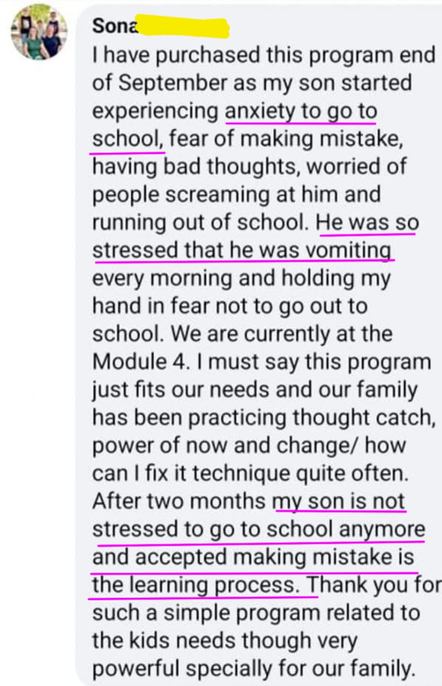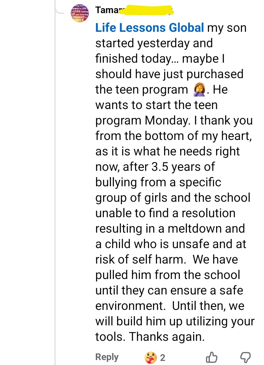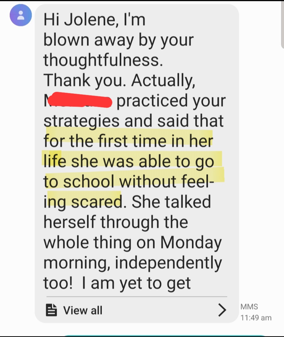 A child went to school for the first time in their life not feeling scared using our Mind Ninja strategy.